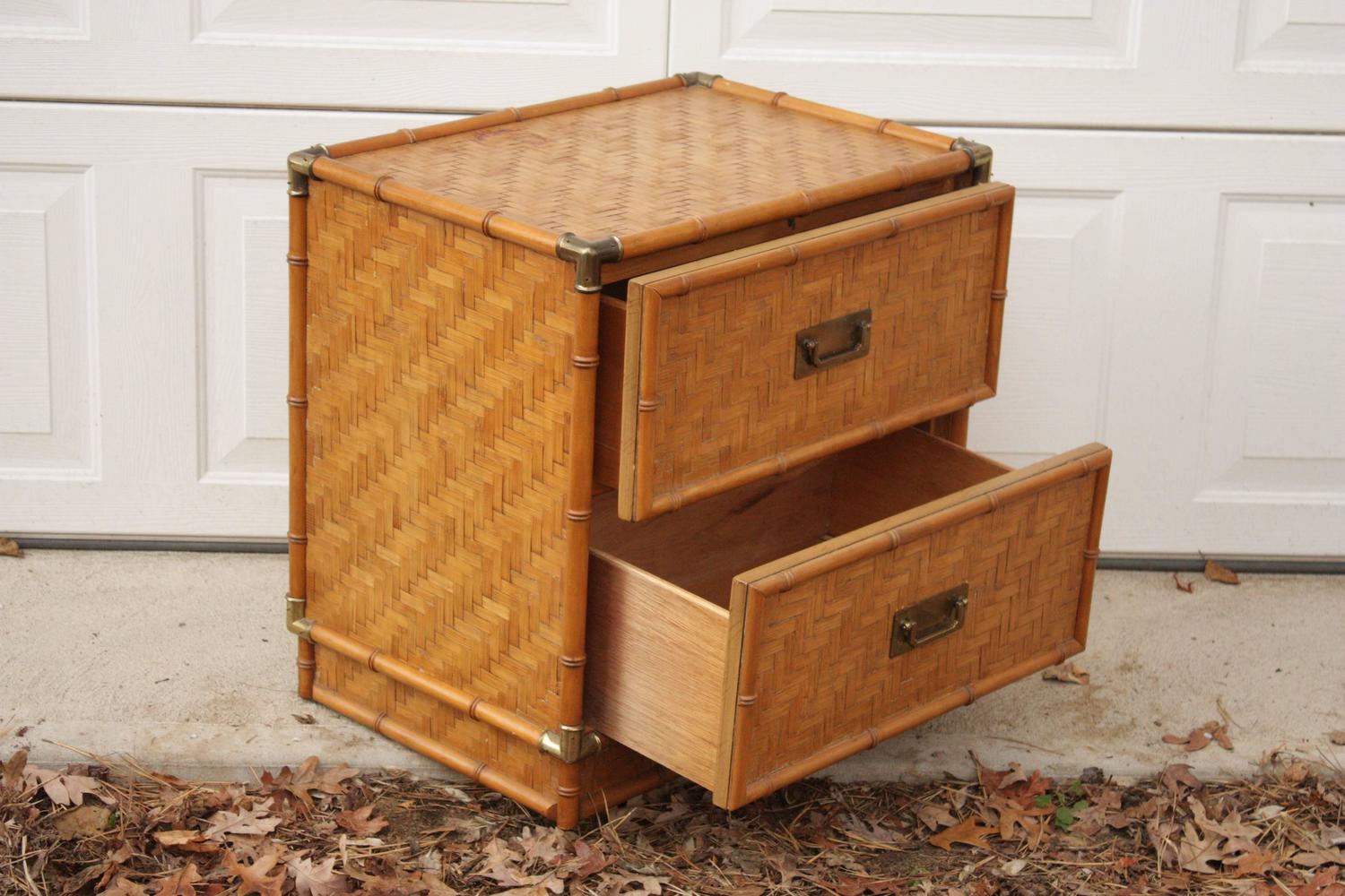 Rattan And White Two Drawer Nightstand - Wicker Rattan Nightstand One Drawer White Color Set Of Two ... : Requiring assembly, the nightstand features woven rattan drawer faces and gold tone metal handles for eye catching style.. Two full sized drawers provide ample room for all your bedside necessities, keeping the area around your bed organized. Nightstand features thick heavy rattan woven on a wood frame with rattan trim. Harborside 2 drawer wicker nightstand from classic rattan model 7482. Choose nightstand with drawers or with a combination of open and closed storage. This listing is for a faux bamboo henry link 3 drawers chest made by henry link signed painted in high gloss white with gold lexington henry link white wicker two drawer commode nightstand #wicker #henrylink.